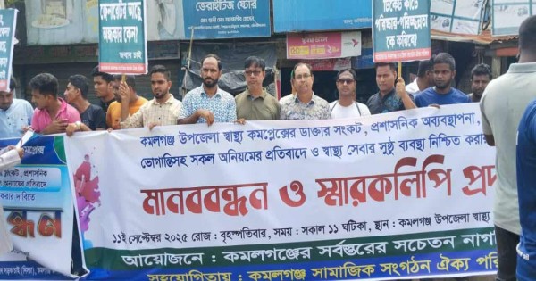 মৌলভীবাজারে জেলা প্রশাসকের বিরুদ্ধে মিথ্যা ও ভিত্তিহীন সংবাদের প্রতিবাদে মানববন্ধন ও প্রতিবাদ ।